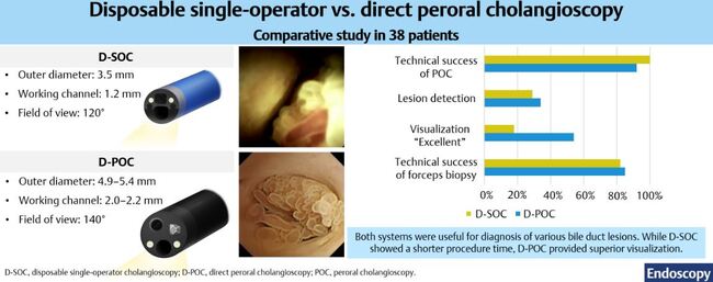 현재는 극세경내시경을 직접 담도로 삽입하는 직접 경구담도내시경 검사법(D-POC)과 일회용 내시경을 담도에 삽입하는 디지털 담도내시경 검사법(D-SOC) 등 두 가지 담도내시경 검사법이 활용되고 있다. 그러나 아직 두 가지 담도내시경 검사법에 대한 구체적인 비교 연구는 세계적으로 없었다.