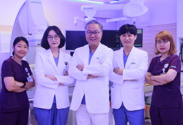 조선화 순천향대 부천병원 간호사(왼쪽부터), 이윤나·문종호·신일상 소화기내과 교수, 송아리 간호사
