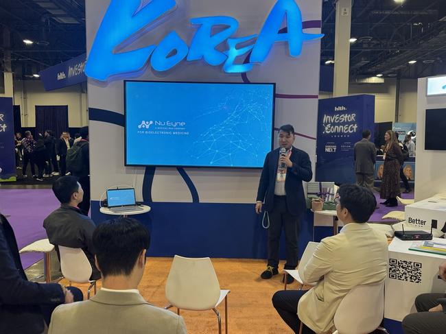 뉴아인은 올해 HLTH에서 2개의 부스를 운영하며 자사 제품을 소개하고 글로벌 네트워크 확장에 주력했다. 특히 보건복지부와 보건산업진흥원의 지원을 받아 편두통 전자약 ‘일렉시아(ELEXIR)’를 공동 전시관에서 선보였다.