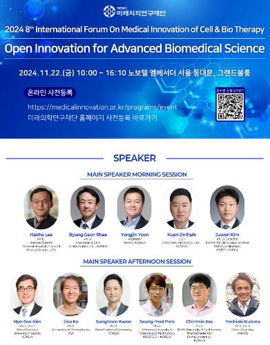 (재)미래의학연구재단과 서울대병원 세포치료실용화센터, 연구중심병원 바이오치료유닛은 11월 22일 금요일 오전 10시부터 노보텔 앰배서더 서울 동대문 호텔 그랜드 볼룸에서 ‘Open Innovation for Advanced Biomedical Science’를 주제로 ‘제8회 미래의학국제포럼’을 개최한다.