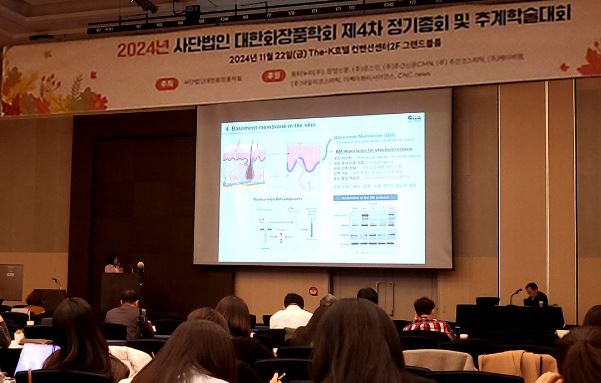 차메디텍은 지난 22일 서울 양재 더케이서울호텔에서 열린 ‘2024년 대한화장품학회 추계학술대회’에서 기저막을 구성하는 핵심 단백질 ‘니도겐’(Nidogen-1)의 피부 재생 효과를 입증한 연구 결과를 발표했다.