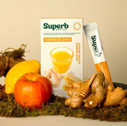 ‘슈퍼브레시피 진저샷’은 유기농 레몬, 사과, 오렌지, 국내산 생강을 NFC 착즙 방식으로 제조해 첨가물과 열처리를 사용하지 않았다. 한 포에는 생강 7.02g을 비롯해 사과와 레몬의 풍미가 조화를 이루며, 치악산 벌꿀이 더해져 자연스러운 단맛을 제공한다.