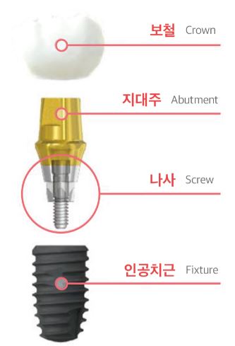 임플란트 치료란 상실된 치아를 대신해 티타늄으로 만들어진 치근과 치관을 심는 치료를 말한다. 티타늄은 뼈와 완전하게 붙는 것으로 알려져 있으며, 인간 신체의 다양한 부위 뼈에 보형물(인공삽입물)로 적용되고 있다. 특히 턱뼈에 치근(치아뿌리) 역할용으로 식립한 티타늄 임플란트를 치과용 임플란트라고 하며, 이에 연결돼 수복된 치관(치아머리)을 임플란트 보철이라고 한다. 이들을 통틀어 식립하는 게 치과 임플란트 치료다.