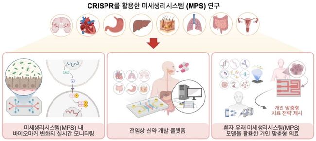 또 오가노이드(3D 미니 장기)와 오가노이드-온-칩(생체모사칩)에서 CRISPR 기술을 적용해 조직 특이적 유전자 발현을 조절하고, 세포 미세환경을 정밀하게 제어하는 등 생체조직과 유사한 환경을 구현할 수 있는 방향성을 제시했다. 이를 통해 특정 세포의 유전자 발현을 정밀하게 조절해 생리학적으로 체내환경과 더 유사한 조직을 만들 수 있을 것으로 기대된다.