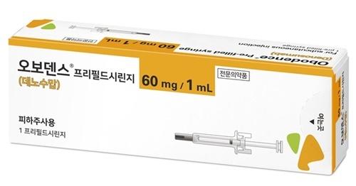 오보덴스는 암젠의 블록버스터 의약품 프롤리아의 바이오시밀러로, 프롤리아는 지난해 전 세계에서 약 6.5조 원의 매출을 기록했으며 국내 시장 규모도 1749억 원에 달한다.