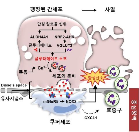 폭음이 촉발하는 간세포–면역세포 간 글루타메이트 신호전달 알코올성 간질환 메커니즘 세계 최초 규명