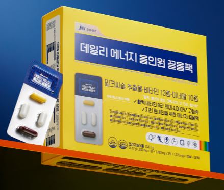 이 제품은 간 건강에 도움을 줄 수 있는 밀크씨슬 추출물(실리마린 130㎎)을 비롯해 체내 에너지 생성과 탄수화물‧단백질 대사에 관여하는 비타민B군 8종을 고함량으로 함유했다. 이밖에 에너지 생성과 근육 기능 유지에 필요한 마그네슘을 비롯해 비타민A‧D‧E‧K 등 총 24가지 성분이 한 팩에 담겨있다.