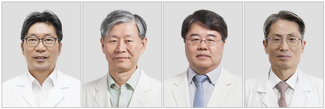 김건석 비뇨의학과 교수, 김재준 소화기내과 교수, 김호중 호흡기내과 교수, 신희석 재활의학과 교수 (왼쪽부터)