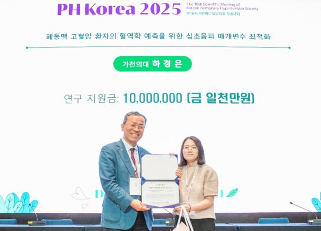 하경은 교수는 젊은 연구자 연구비 수상자로 선정돼 1천만 원의 연구비를 받았으며, ‘Case Competition Award’ 부문에서도 3등을 수상했다. 하 교수는 ‘폐동맥 고혈압 환자의 혈역학 예측을 위한 심초음파 매개변수 최적화’라는 주제로 연구를 진행하고 있으며, 해당 결과는 학회 공식 저널인 『Right Heart Journal』에 게재될 예정이다.