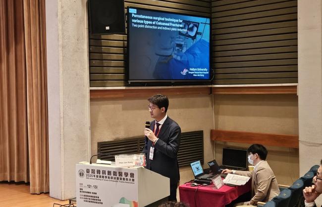 강 교수는 대만의 주요 외상 전문병원 두 곳을 방문해 외상환자 진료 시스템과 수술 기술, 병원 내 연구·교육 인프라를 살펴본 뒤, 타이베이에서 열린 본 학술대회에서 새로운 종골 골절 최소침습 수술법에 대해 강연했다. 이 수술법은 기존 12cm 이상의 절개가 필요했던 것을 2mm로 최소화해 합병증과 회복 기간을 크게 줄인 점이 특징이다.
