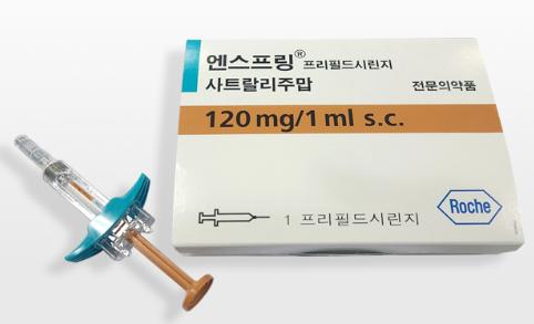 엔스프링은 항아쿠아포린-4 항체 양성인 성인 시신경척수염 범주질환의 치료제로 허가된 약제로, 질환의 핵심 발병인자인 인터루킨-6(IL-6) 수용체를 선택적으로 표적해 IL-6 신호를 억제하는 기전의 치료제다. 시신경척수염 범주질환 허가 약제 중 유일한 피하주사형 제제로 유지요법 기준 4주마다 1회 피하 투여가 가능하다.