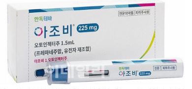 아조비는 월 1회 병원 또는 가정에서 투여할 수 있어 치료 순응도를 높이고 가족의 치료 부담을 줄일 수 있다. 미국에서 2018년에 성인 편두통 예방 치료제로 첫 승인을 받았으며 현재 프리필드(사전충전형) 오토인젝터 또는 프리필드 시린지 형태로 사용 가능하다.
