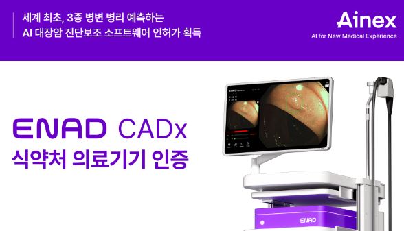 아이넥스코퍼레이션은 대장암 영상검출·진단보조 소프트웨어 ‘에나드(ENAD) CADx’로 식품의약품안전처의 의료기기 3등급 허가를 받았다고 8일 밝혔다.