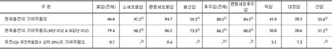 이번 연구는 건강보험연구원과 연세대 보건대학원(지선하 교수 연구팀)이 공동으로 수행했으며, 2004~2013년 전국 18개 민간검진센터 수검자 13만6965명을 대상으로 건강검진 및 유전위험점수(PRS) 자료, 중앙암등록자료, 건강보험 자격자료를 연계, 2020년까지 추적관찰과 분석을 했다.