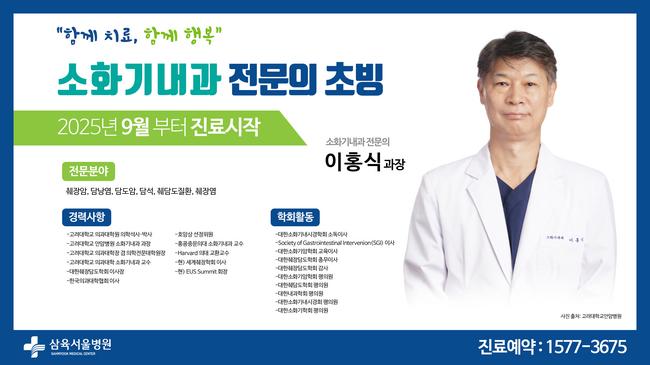 이홍식 소화기내과 교수가 오는 9월 1일부터 삼육서울병원 소화기내과에서 진료를 시작한다.
