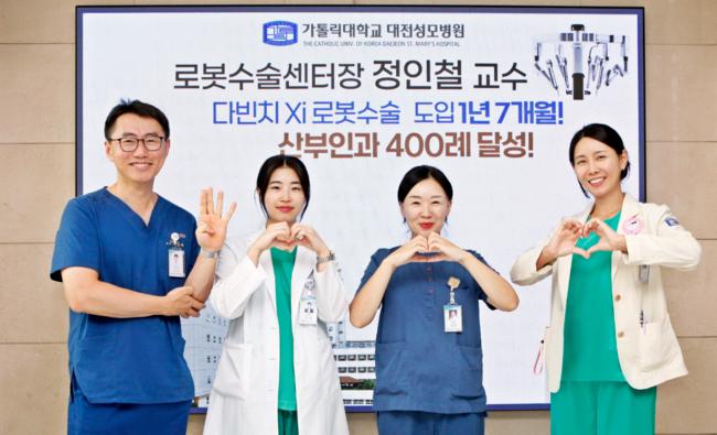 정인철 가톨릭대 대전성모병원 산부인과 교수팀이 ‘다빈치 Xi’를 이용한 로봇수술 400례를 달성했다고 27일 밝혔다.