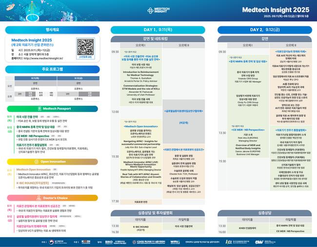 한국보건산업진흥원이 주최하는 「메드텍 인사이트 2025」가 오는 9월 11일부터 12일까지 서울 양재 엘타워에서 열린다.