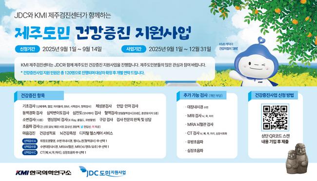 KMI한국의학연구소는 제주도민을 대상으로 건강검진과 다양한 건강증진 프로그램을 제공하는 ‘제주도민 건강증진 지원사업’을 진행한다고 3일 밝혔다.