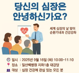 인제대 일산백병원은 ‘세계 심장의 날’을 맞아 9월 16일 오전 10시부터 지하 1층 대강당에서 순환기내과 건강강좌를 개최한다.