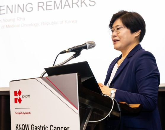 위암은 전세계 환자의 약 75%가 아시아에서 발생하는 것으로 알려져 있다. 특히 한국을 포함한 일본, 중국 동아시아 3개국이 전 세계 위암 발생의 약 60.2%를 차지할 정도로 서양 대비 아시아 내에서 치료 부담이 큰 질환이다. 이런 까닭에 한·중·일 아시아 3국이 글로벌 위암 치료 환경의 발전을 선도하고 있기도 하다. 특히 한국과 일본의 경우, 서양 국가들과 비교했을 때 발병 수 대비 사망률이 현저히 적은 상황이다. 한국은 일본, 영국, 유럽연합에 이어 4번째로 빌로이가 승인받은 국가이기도 하다.  라선영 연세암병원 종양내과 교수가 지난 8월 30일 개막한 ‘KNOW 위암 마스터클래스’에서 개회사를 밝히고 있다.