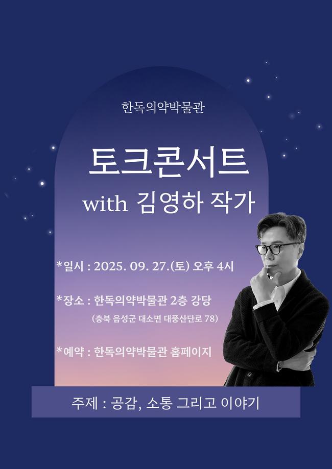 한독의약박물관이 오는 9월 27일 김영하 작가와 함께하는 특별한 토크콘서트를 연다. 이번 행사는 ‘공감, 소통 그리고 이야기’를 주제로 마련돼 참가자들에게 새로운 경험을 선사할 예정이다.