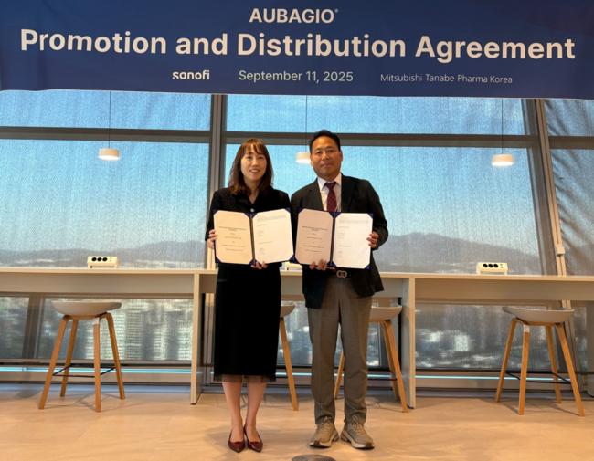 글로벌 제약사 미쓰비시다나베파마코리아가 사노피 한국법인과 다발성경화증(MS) 치료제 오바지오(Aubagio, 성분명 테리플루노마이드)에 대한 국내 독점 판매 계약을 체결했다고 밝혔다.