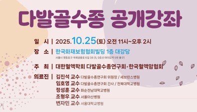 • 한국혈액암협회·대한혈액학회 다발골수종 연구회, 10월 25일 ‘다발골수종 공개강좌’ 개최