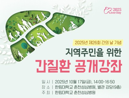 한림대 춘천성심병원은 오는 17일 오후 2시에 별관 9층 강당에서 지역주민을 위한 간질환 공개강좌를 개최한다.