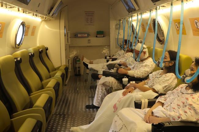 최대 36명까지 수용 가능한 한림대 한강성심병원 고압산소치료센터 다인용 챔버 내부 모습.