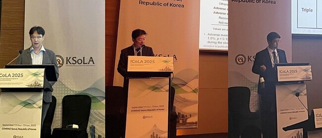 레시게르셉트는 유한양행이 2020년 7월 지아이이노베이션으로부터 도입한 신약으로, 일본을 제외한 글로벌 판권을 유한양행이 보유하고 있다. 강지훈 서울대(왼쪽부터), 배성아 연세대, 고규용 인제대 의대 교수가 ‘ICoLA 2025’에서 발표하고 있다. 한미약품의 이상지질혈증 치료제 ‘로수젯(에제티미브/로수바스타틴)’과 세계 최초 1/3 용량의 3제 항고혈압제 ‘아모프렐(암로디핀/로사르탄/클로르탈리돈)’이 만성질환 관리에서 주목받고 있는 저용량 복합제 치료 전략으로 소개됐다.