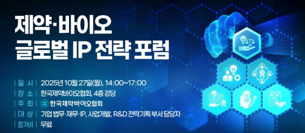 한국제약바이오협회는 오는 27일 오후 2시, 제약회관 4층 강당에서 ‘제약바이오 글로벌 IP 전략 포럼’을 개최한다.
