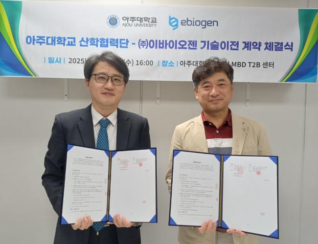 이상래 아주대의료원 교수, 유성덕 ㈜이바이오젠 대표 (왼쪽부터)