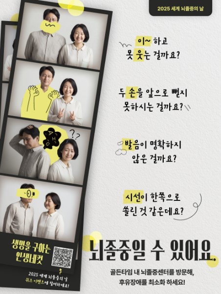 학회는 뇌졸중 의심 증상인 ‘이웃손발시선’을 기억하고 골든타임 내 신속히 치료받는 것이 무엇보다 중요하다고 강조했다.