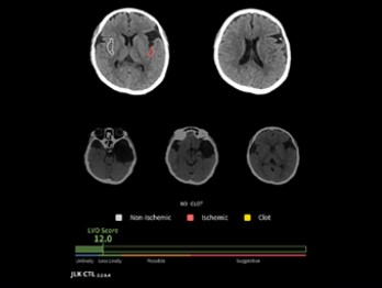JLK-CTL은 조영제 없이 촬영한 비조영 CT(NCCT) 영상으로 대혈관 폐색(Large Vessel Occlusion, LVO) 여부를 신속하고 정확하게 예측하는 AI 솔루션이다. 응급 현장에서 주로 쓰이는 비조영 CT를 기반으로 조기에 대혈관 폐색 의심 환자를 선별해 골든 타임을 확보하는 것이 핵심이다.