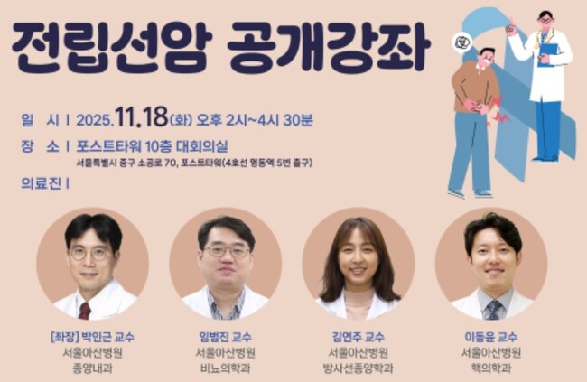 박인근 종양내과 교수를 비롯해 임범진 비뇨의학과, 김연주 방사선종양학과, 이동윤 핵의학과 교수 등 서울아산병원 의료진이 연자로 참여해 신뢰할 수 있는 정보를 제공한다.