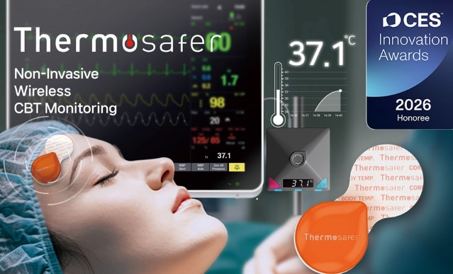 비침습식 무선 심부체온 연속 모니터링 체온계 ‘써모세이퍼’의료사물인터넷(Internet of Medical Things, IoMT) 기반 의료기기 전문기업 초이스테크놀로지는 비침습식 무선 심부체온 연속 모니터링 체온계 ‘써모세이퍼’(Thermosafer XST600)가 CES 2026 혁신상(CES 2026 Innovation Awards)에서 ‘Human Security for All (모두를 위한 인간안보)’ 부문 혁신상 수상작으로 선정됐다고 7일 밝혔다.