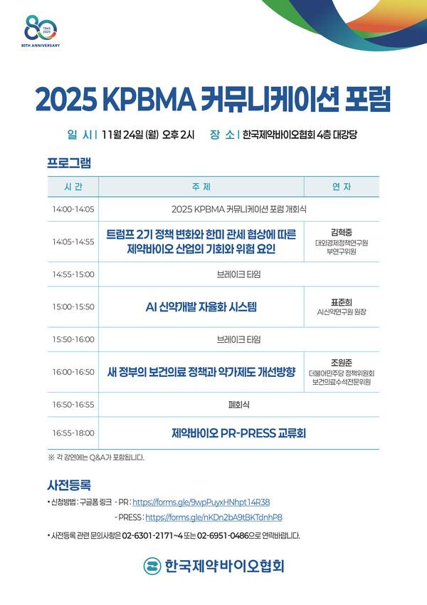 제약바이오협회 ‘2025 KPBMA 커뮤니케이션 포럼’ 24일 개최 … 홍보‧언론인 교류, 정책변화 공유
