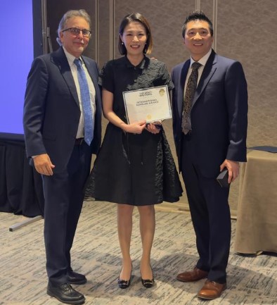 문지현 서울대병원 마취통증의학과 교수(가운데)가 미국 미주신경학회 국제학술상을 받고 있다.