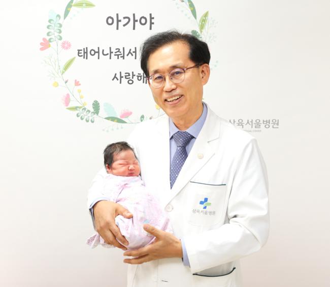 양거승 삼육서울병원장이 12일 태어난 일곱째 신생아를 안고 있다.