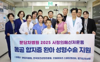 차의과학대 분당차병원은 ‘사랑의 메신저 운동’의 일환으로 구개누공으로 의사소통이 어려웠던 필리핀 40대 여성과 합지증으로 일상생활이 어려운 몽골 8세 남아를 초청해 무료 수술을 지원했다. 이번 치료는 분당차병원과 한국보건산업진흥원, 오퍼레이션 스마일코리아, 경기도의사회, 월드휴먼브리지의 공동 후원으로 진행됐다.