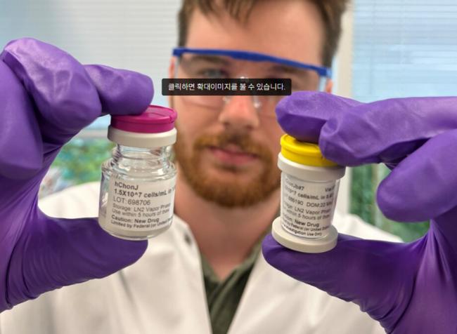코오롱티슈진 연구원이 본사에서 TG-C 샘플을 보여주고 있다.