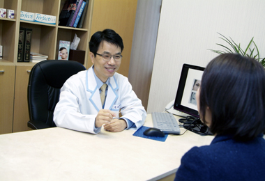 손일영 눈피부과 원장이 눈밑지방 환자와 상담하고 있다.