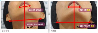 양쪽 턱관절의 깨어진 균형이 3개월여의 한의학 치료로 개선된 모습(치료전 왼쪽)