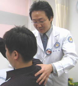 성창훈 연세사랑병원 원장이 어깨통증 환자를 진료하고 있다.