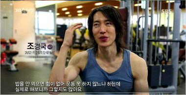 간헐적 단식에 강도 높은 운동으로 근육질 몸매를 자랑하는 일명 ‘몸찬 아저씨’ 조경국 씨의 모습