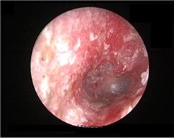 물놀이 중 갯벌 진흙이 귀로 들어가 외이도에 염증이 생긴 모습