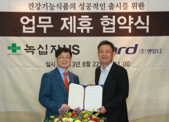 녹십자의 건강기능식품 부문 회사인 녹십자HS(대표 유영효)는 엔알디(대표 문원국)와 건강기능식품 공동개발을 위한 업무제휴 협약식을 가졌다고 23일 밝혔다.