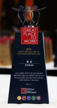 한국애브비가 수상한 ‘2013 GWP 대한민국 일하기 좋은 기업’