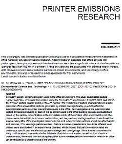 호주 퀸즐랜드 테크놀로지대 연구팀은 수십 대의 레이저프린터를 대상으로 실험한 결과 총 62대의 프린터 중 약 30%인 17대가 다량의 미세물질을 배출했다고 2007년 발표했다.