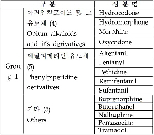 내년 1월부터 점검대상에 포함되는 마약류 진통제 14개 성분 중 ‘날부핀’ 등 5개 성분은 해열진통소염제 Group 3(아편계 진통제)의 성분과 같아 해열진통소염제 효능군에서 제외되고 마약류 진통제 효능군으로 분류된다.